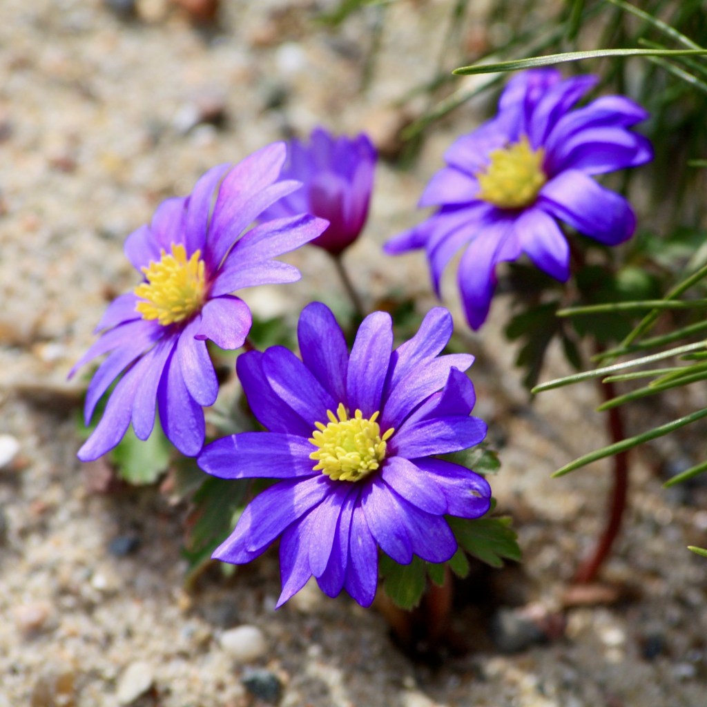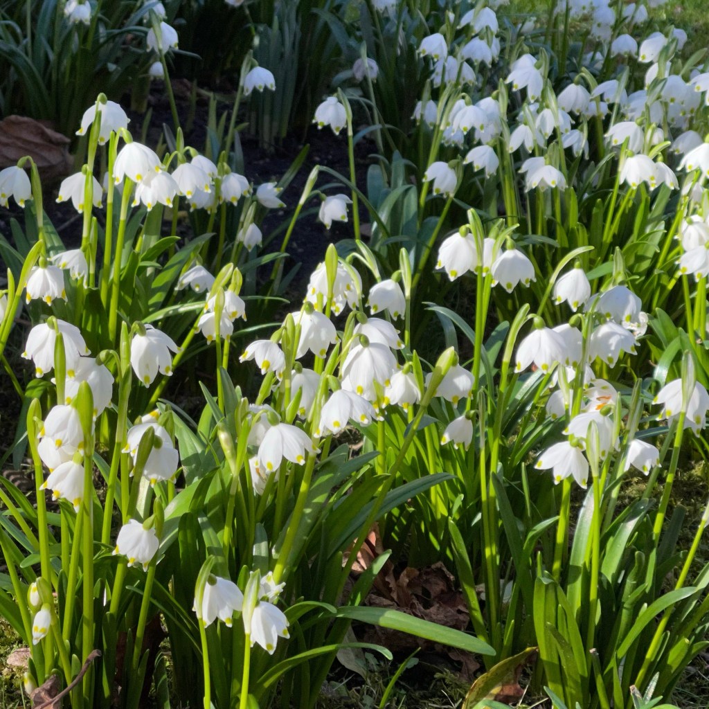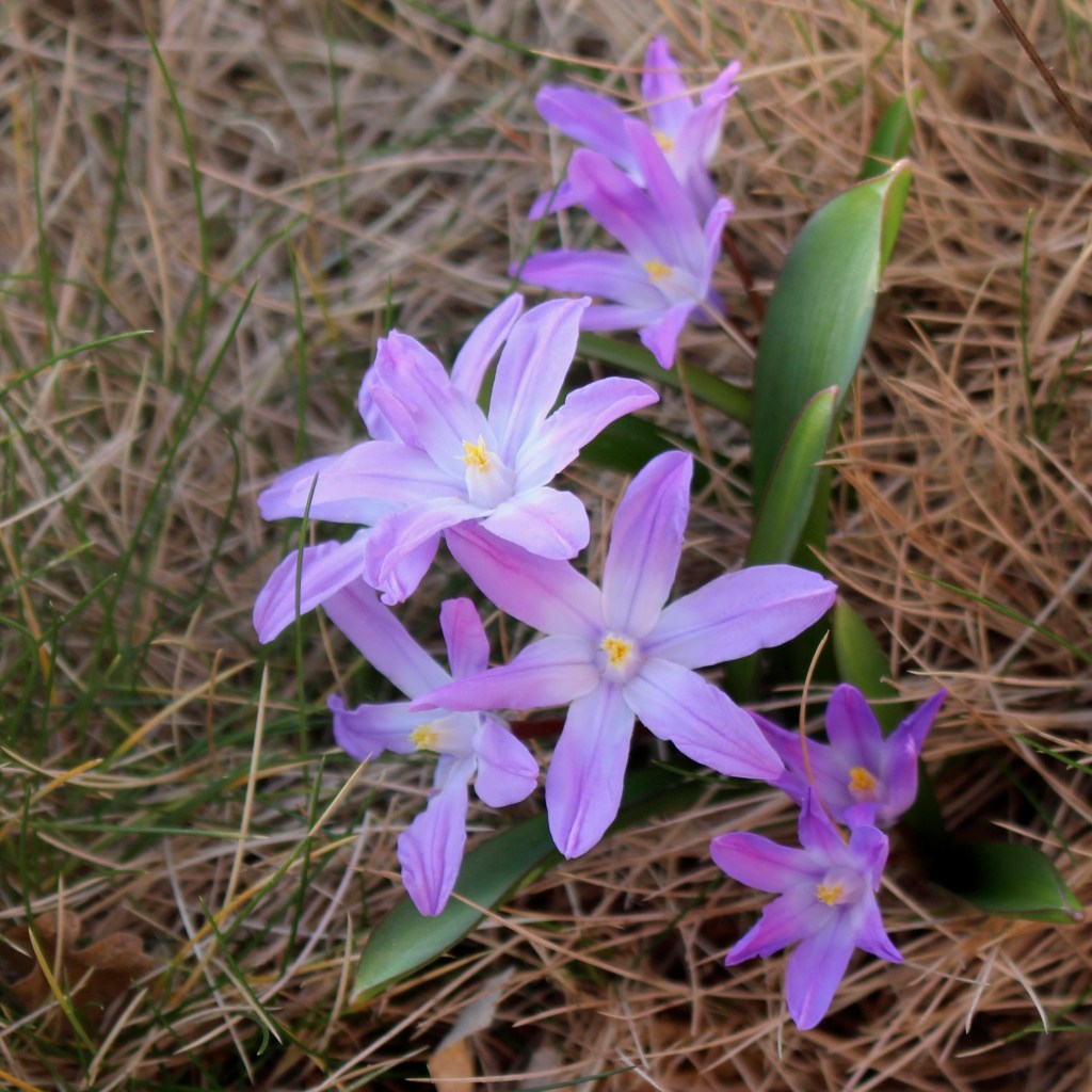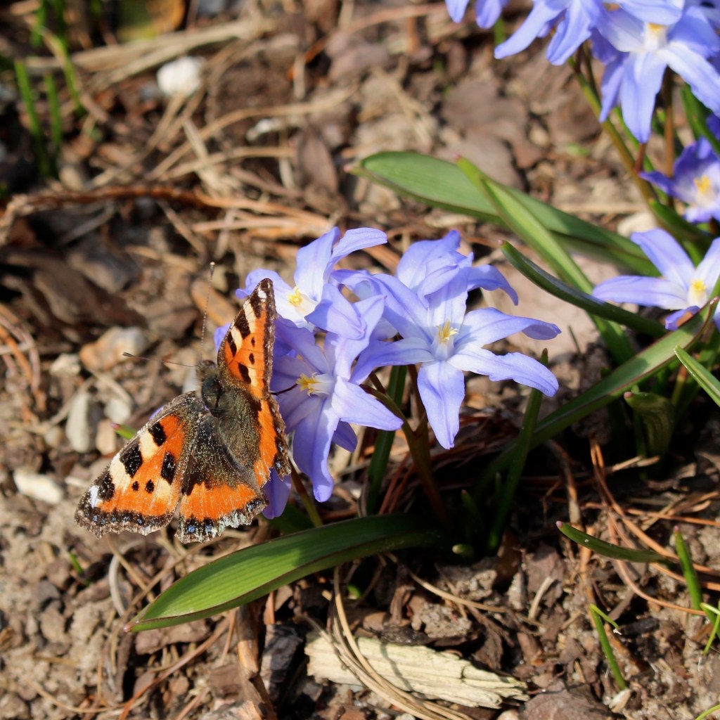 Ein weiterer früher Zwiebelblüher, der als Vagabund gern versamt, ohne lästig zu werden, ist der Schneestolz (Chionodoxa luciliae) in Blau, Violett/Rosa. Zusammen mit dem Buschwindröschen (Anemone nemerosa) ergeben sich im März/April schöne Teppiche unter Gehölzen, die gern von Wildbienen und Schmetterlingen angeflogen werden.