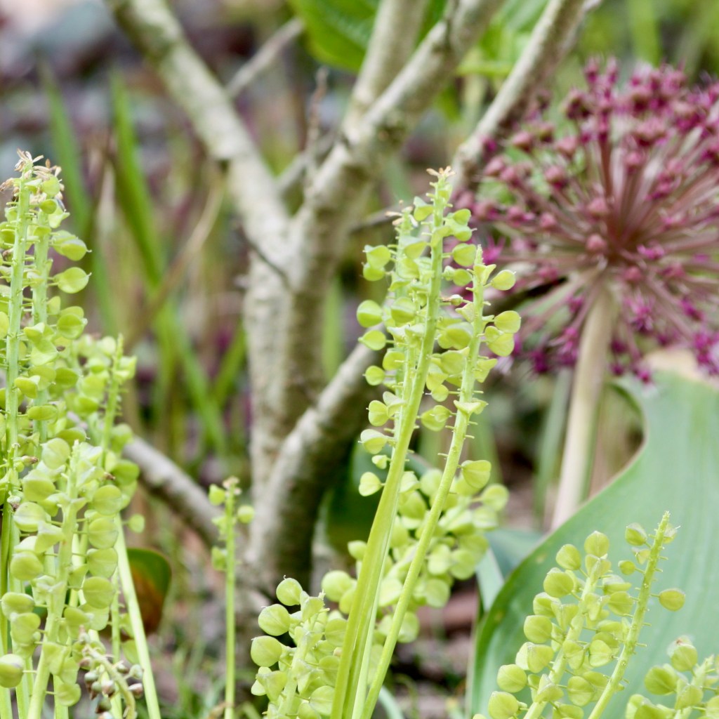 Die verschiedenen Zierlauch-Arten krönen dann das Frühlings-Ende und den Sommerbeginn. Die Sorten mit den großen Kugeln (wie z.B. ‚Purple Sensation‘ oder ‚Mount Everest‘) benötigen allerdings kräftig „Futter“, sonst bestrafen sie uns mit Mickerwuchs oder zeigen sich gar nicht mehr. Sehr windfest ist der kurze aber großkugelige Allium karataviense ‚Red Giant‘. Sein bläuliches und kräftiges Laub ist ebenso zierend, wie die tollen Blüten. Mein Lieblingslauch ist Allium sphaerocephalon – ein Zierlauch mit kleineren über den Beeten schwebenden Köpfchen. Diese Lauchart ist sehr anspruchslos und macht sich auch gut in nährstoffärmeren Beeten. Die späte Blüte ab Juni passt hervorragend für die Beimischung in Gräser-betonten Gestaltungen. Alle Zierlauch Arten zeichnen sich vor allem durch einen hohen Nektar- und Pollengehalt aus – also macht aus Euren Gärten ein Schlaraffenland mit Zierlauch!