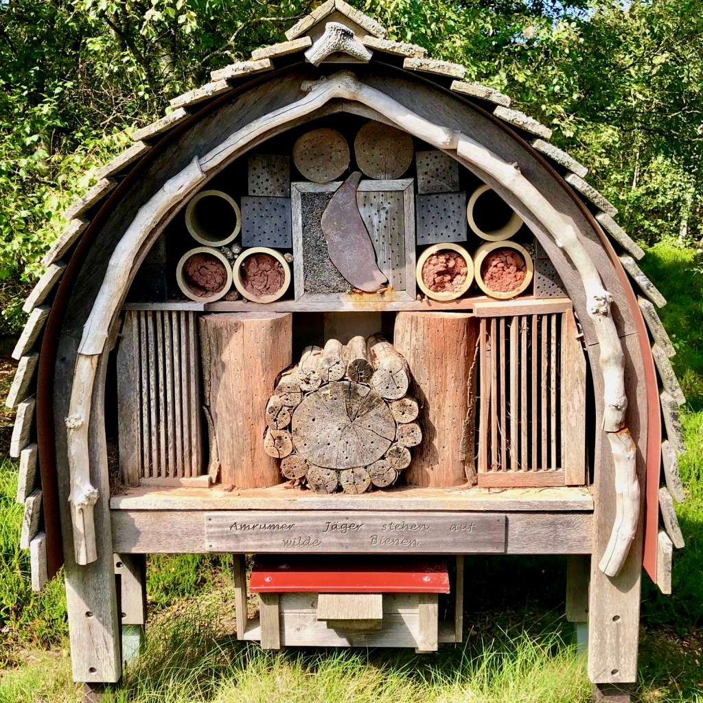 Für Insekten gibt es nichts Wertvolleres als Stengel, Gräser, Ritzen, Pfützen, Totholz, Mulch etc. Ein Insektenhotel stellt quasi Nistplätze und Überwinterungsmöglichkeiten zur Verfügung. Aus Ton, Holz, Ziegel, Stroh lässt sich ein solches Haus selbst herstellen. Aber Achtung: gewisse Anforderungen gilt es zu beachten, damit die Tiere sich nicht verletzen. Der NABU bietet hierzu wunderbare Anleitungen. Ein Beispiel für ein ästhetisches Luxushotel habe ich vor ein paar Jahren auf der Insel Amrum entdeckt – seht selbst. So ein schönes Haus passt auch in gestalterisch anspruchsvolle Gärten.