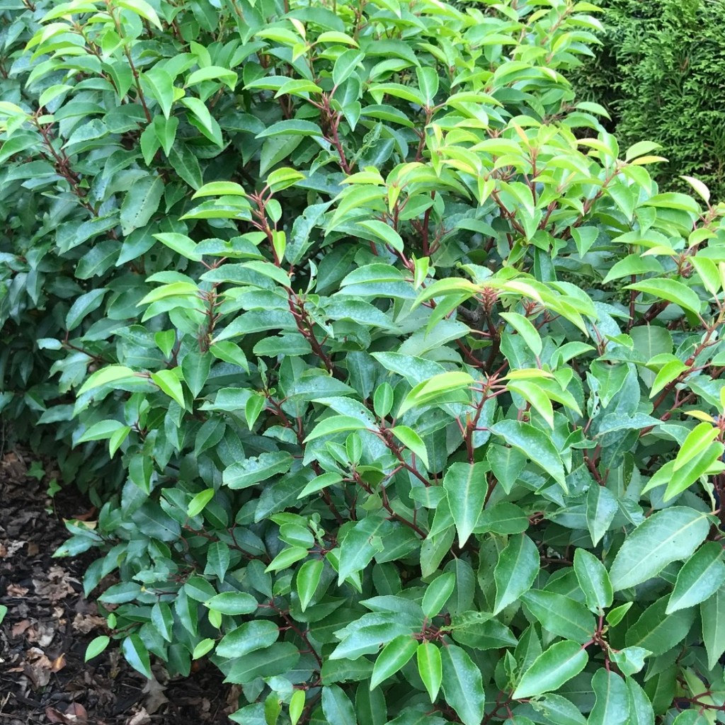 In Kombination mit der immergrünen Ölweide sieht der immergrüne portugiesische Kirschlorbeer (Prunus lusitanica ‚Angustifolia‘) wunderschön aus. Auch dieser Trockenkünstler eignet sich hervorragend als Hecken- oder Formgehölz. Starke Winterorkane führen manchmal zu braunen Blättern, die aber schnell wieder durch nachwachsende ersetzt werden. Nach der Wachstumskur im Frühjahr sehen die Gehölze wieder wie neu aus.