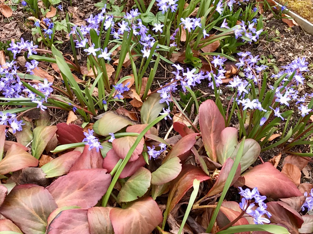 Chionodoxa kann auch eine bezaubernde Ergänzung zu den kräftigen Blättern und robusten Blütenständen von Bergenia cordifolia sein. Bergenia, auch als Herzblatt bekannt, ist eine ausdauernde Staude, die im Frühjahr große, ledrige Blätter hervorbringt und im späten Frühling bis Frühsommer rosafarbene Blüten trägt. Wenn diese mit den blauen oder violetten Blüten von Chionodoxa kombiniert werden, entsteht eine harmonische Szenerie, die den Garten mit Frühlingsfarben erstrahlen lässt.
