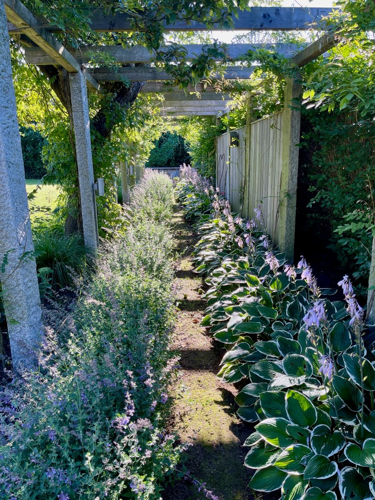 Der bereits bestehende schöne Pergolagang wurde noch einmal mit einem angepassten Pflanzplan überarbeitet.