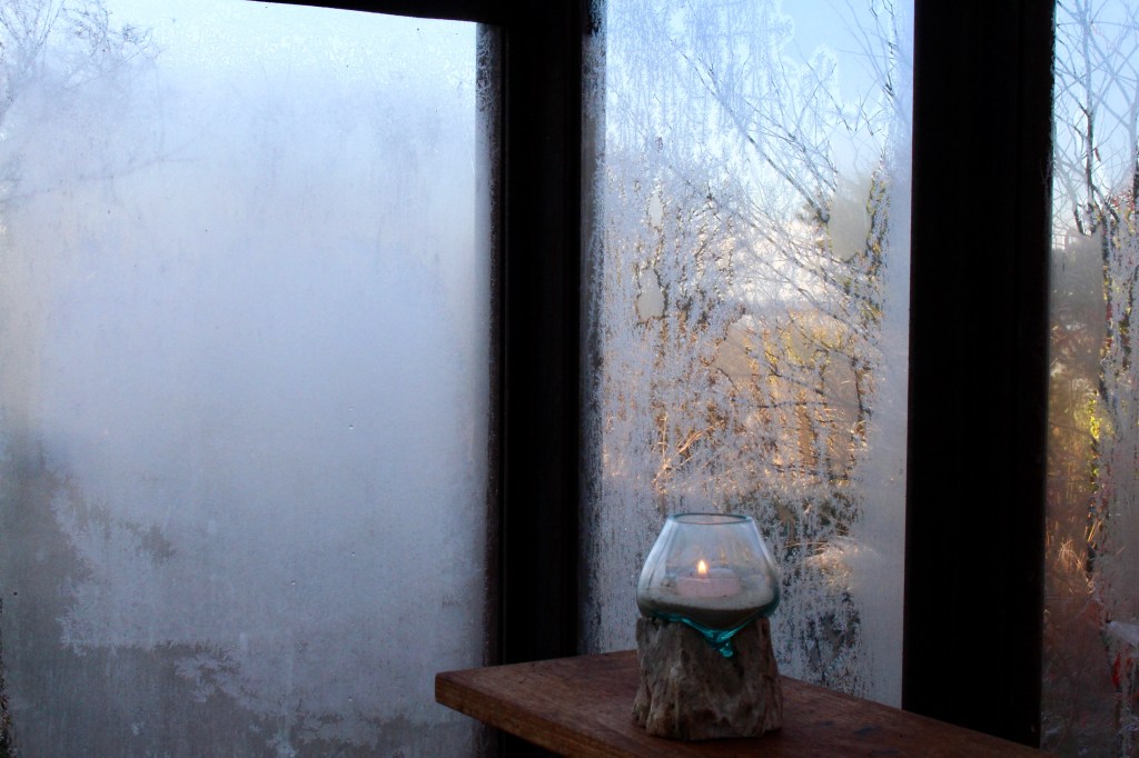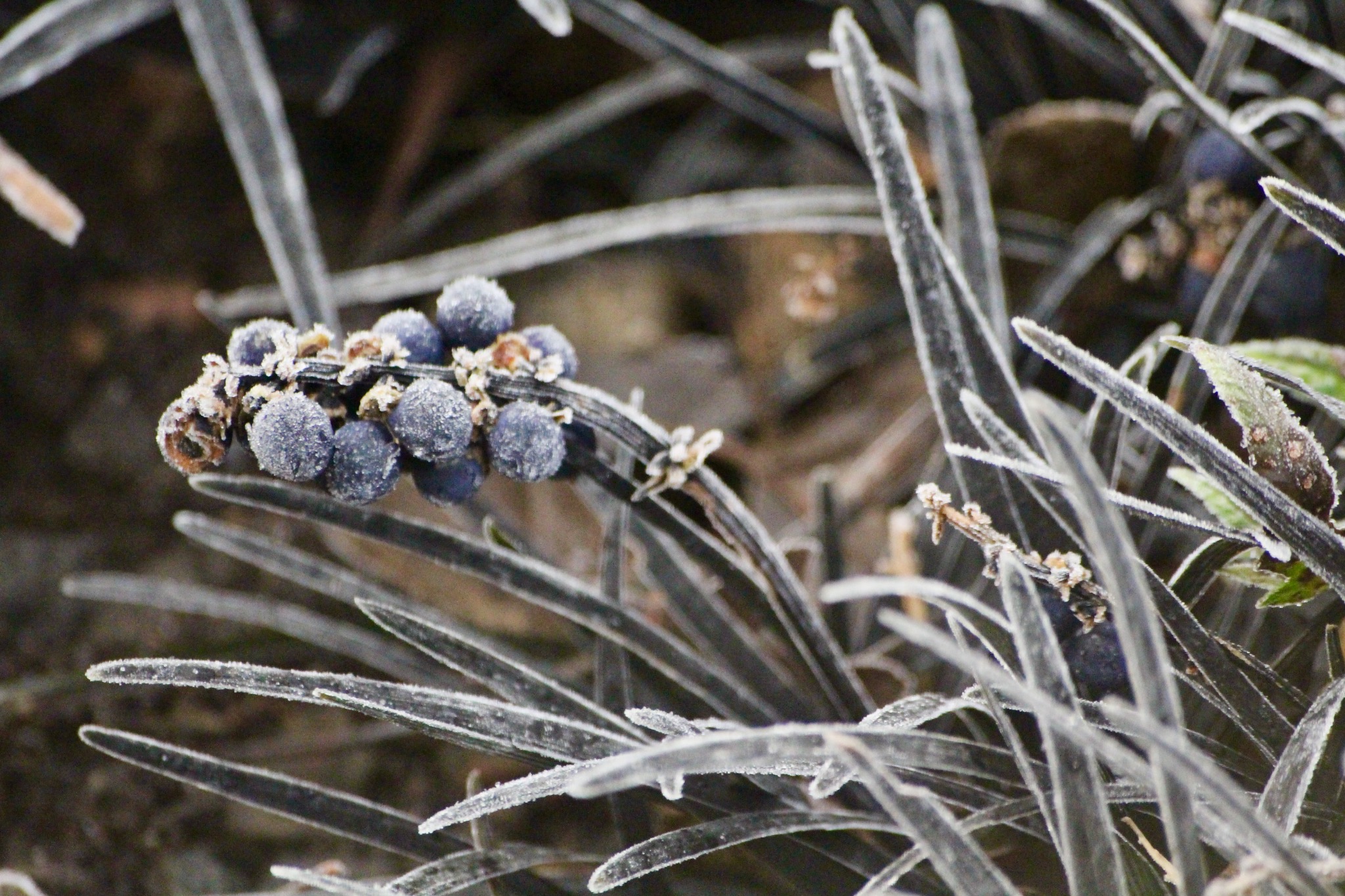 Draußen stand der Garten wie eingefroren – die Stauden mit Reif überzogen, die Beeren vom Pfaffenhütchen leuchtend rosa, die Gräser still.