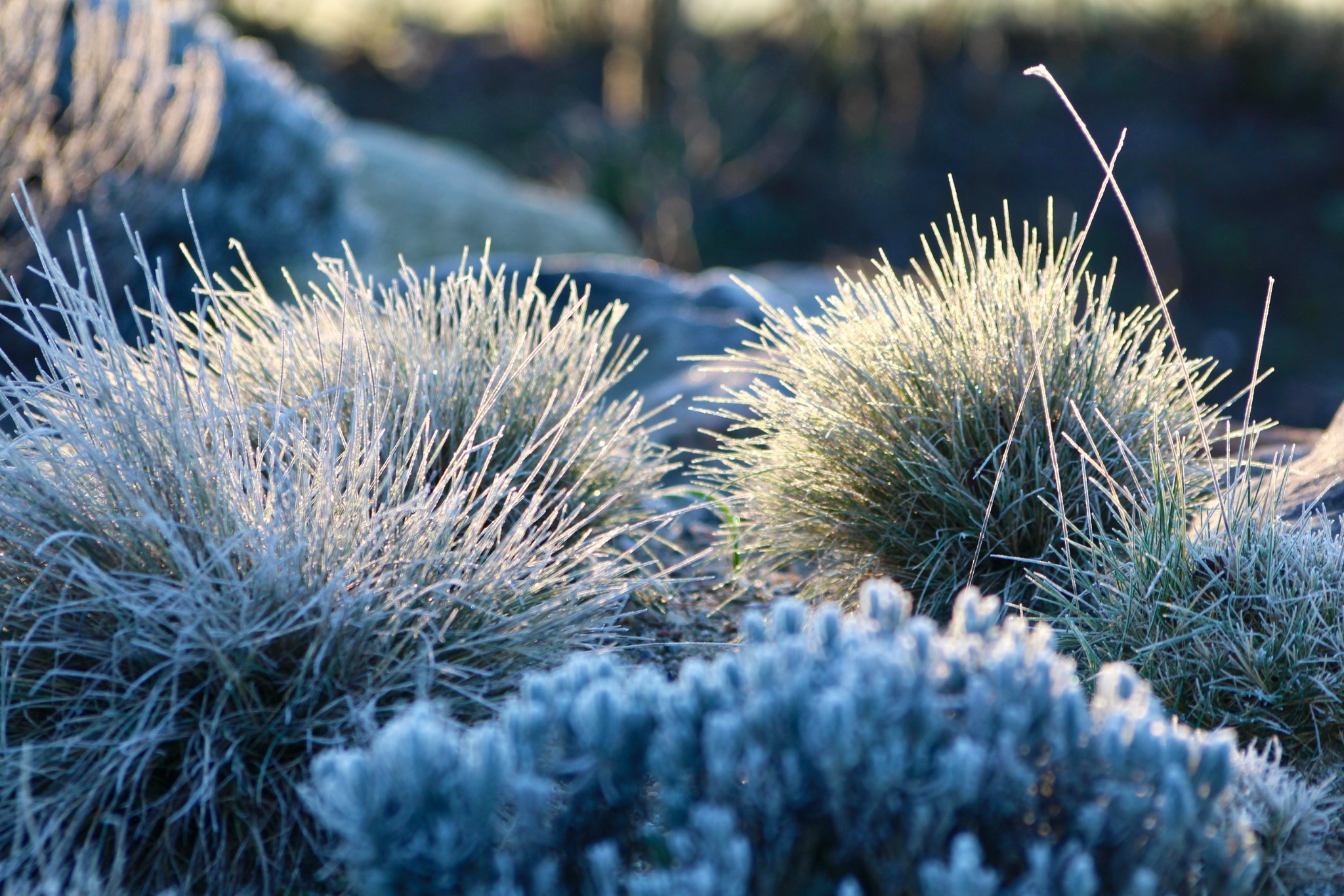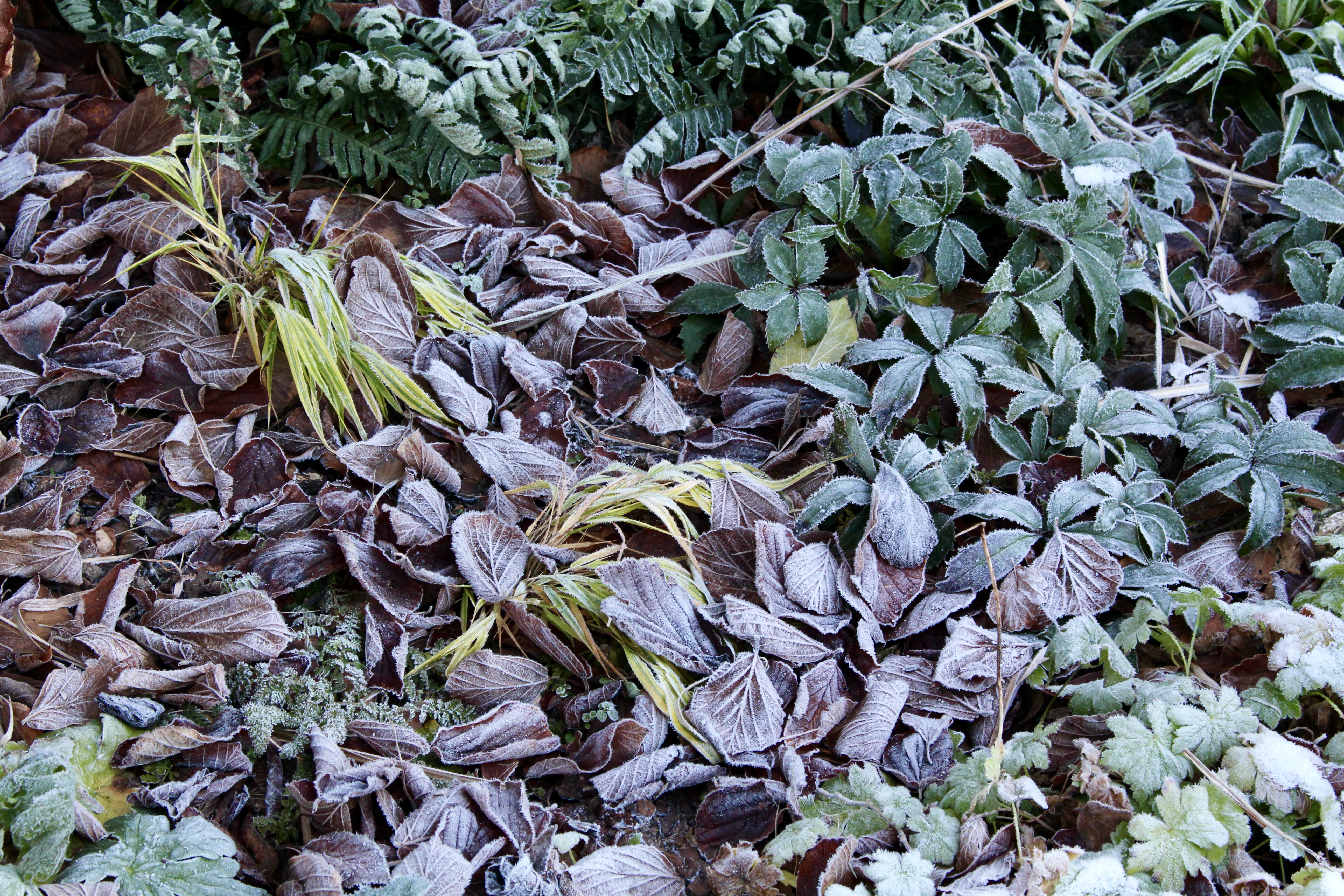 Der Boden war hart, die Halme überzuckert, und zwischen den matten Farben glitzerten winzige Kristalle im ersten Licht.