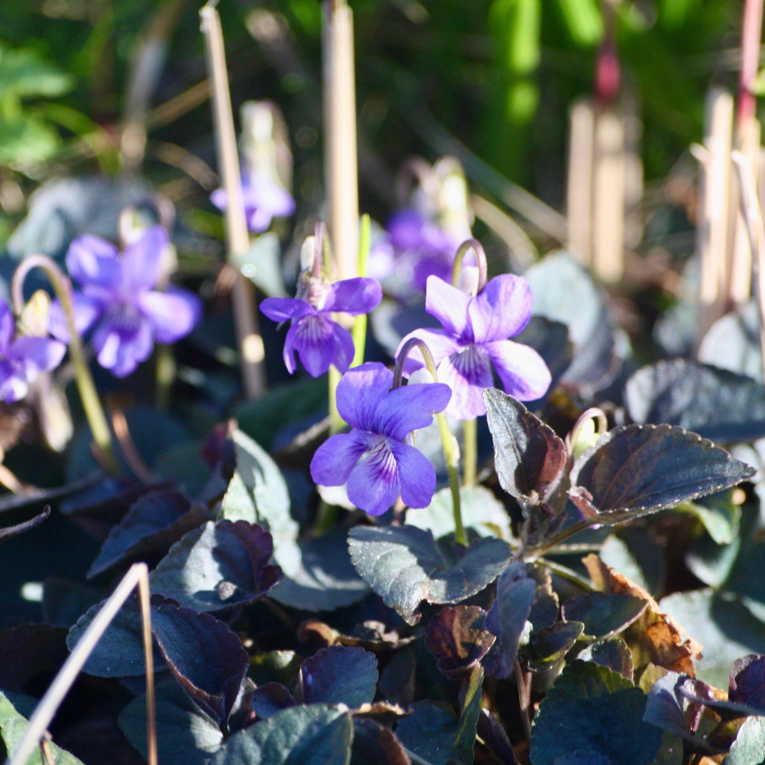 Viola odorata blüht in tiefem Blau (inzwischen auch in zarten Rosatönen) oft schon im Winter und eignet sich wunderbar als Bodendecker unter Gehölzen. Die Blätter dienen als Raupenfutter – also nicht wundern, wenn die Pflanze zeitweise etwas lichter aussieht. Die Blüten wiederum liefern Nektar für Wildbienen.