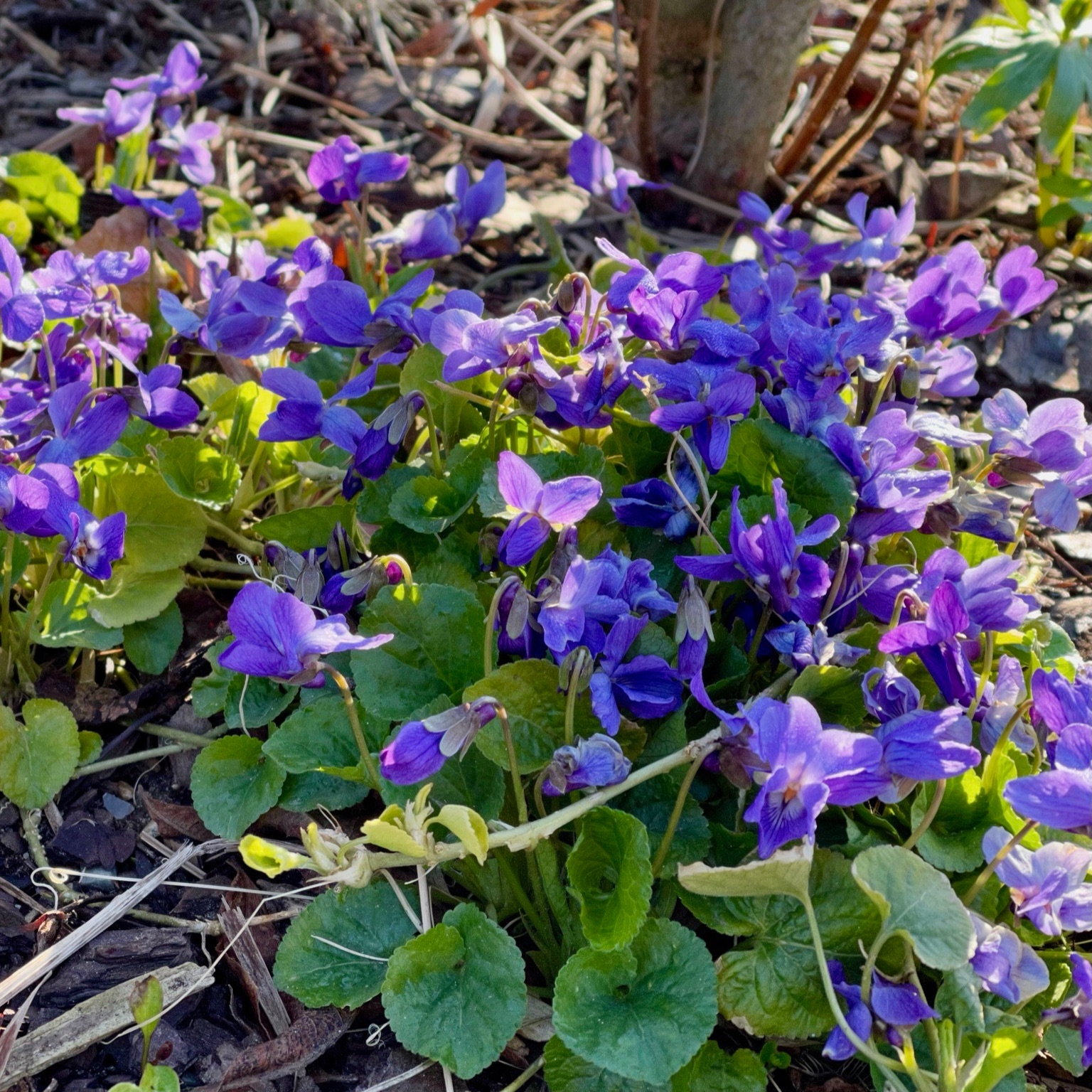 Eine schöne, etwas später blühende Ergänzung ist das Labradorveilchen mit seinen dunklen Blättern.