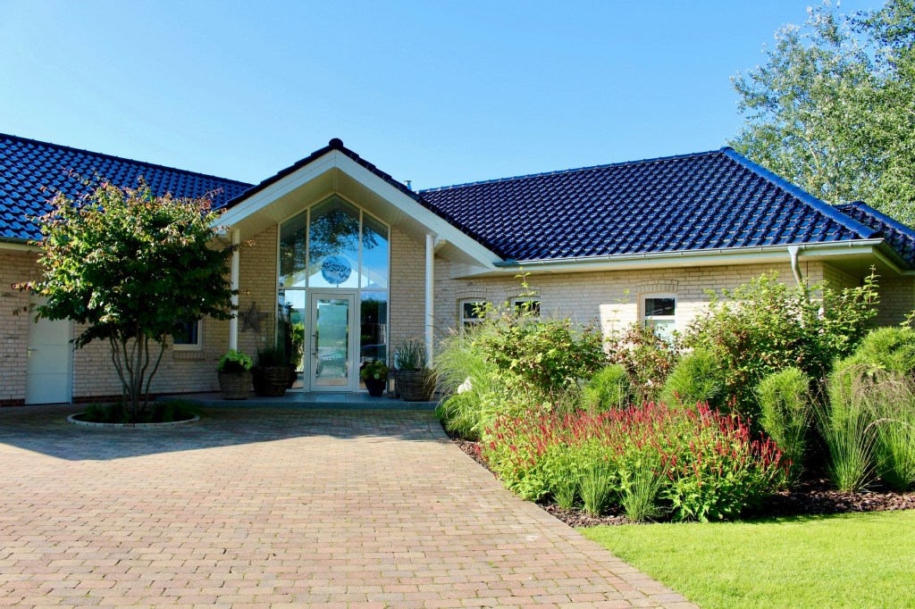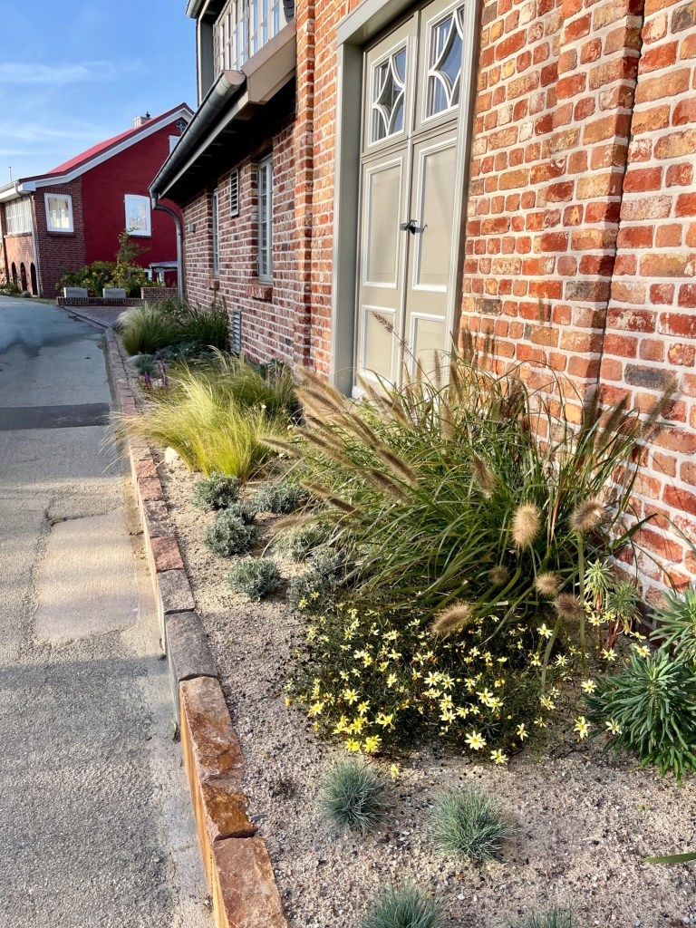 Neben sichtschützenden Trockenmauern und Hecken werden die kommenden Gäste auch ihre Freude an einer Stauden- und Gräser betonten Garten haben. Für ein Ferienhaus auf der Nordseeinsel ist dies nicht selbstverständlich.