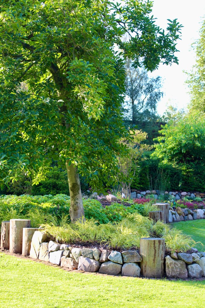 Verschiedene Pflanzbereiche wurden durch eine geschickte Linienführung und Pflanzung abgegrenzt. Eine niedrige Trockenmauer sowie Cortenstahlkanten unterteilen den Garten bzw. begrenzen die Themenbereiche. Bis dato gepflasterte Flächen und Wege sind durch wassergebundener Deckschichten ausgetauscht und bringen einen naturnahen Charakter in den Garten.